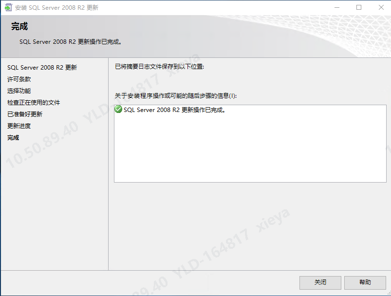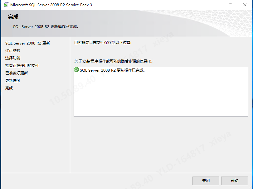 完成后建议重启以免遇到其他奇奇怪怪的问题,重启完成后通过SELECT @@VERSION;查询,结果应该是Microsoft SQL Server 2008 R2 (SP3) - 10.50.6000.34 (X64) Aug 19 2014 12:21:34 Copyright (c) Microsoft Corporation Enterprise Edition (64-bit) on Windows NT 6.3 (Build 14393: ) (Hypervisor),顺带检查下业务的数据连接情况,无误后继续操作。
